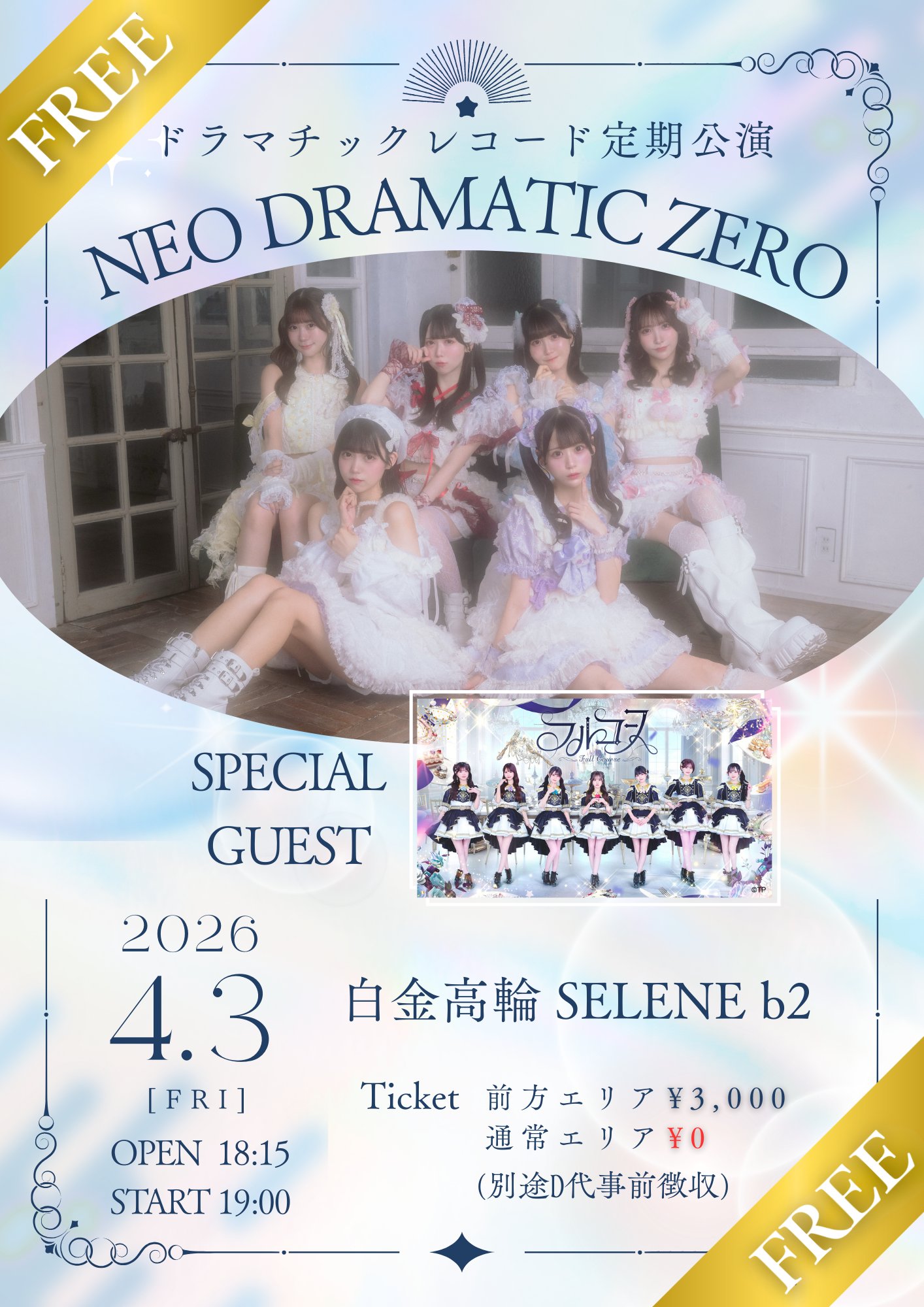 Sチケット : ¥3,000 / Aチケット : ¥0 / +drink(¥700)