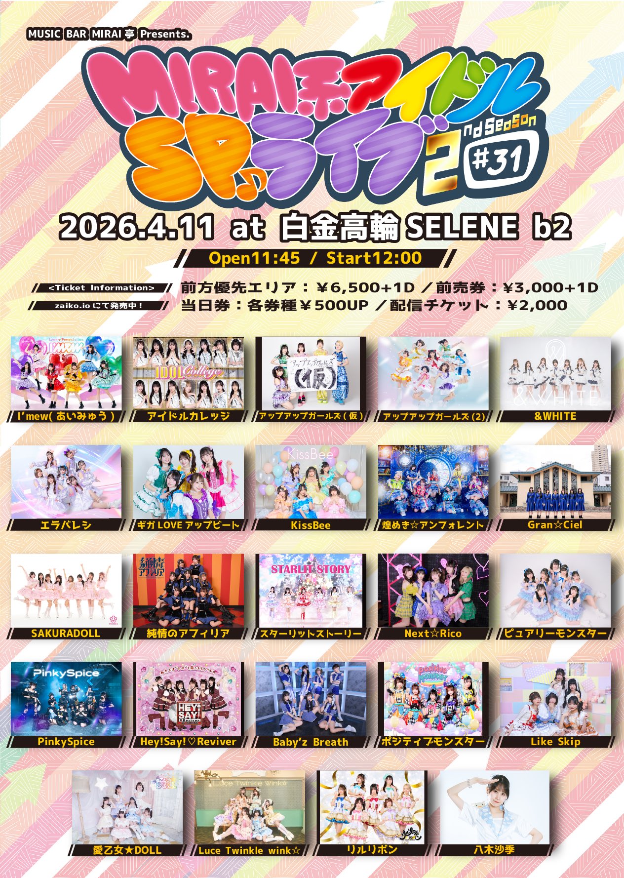 I'mew(あいみゅう) / アイドルカレッジ / アップアップガールズ(仮) / アップアップガールズ(2) / &WHITE / エラバレシ / ギガLOVEアップビート / KissBee / 煌めき☆アンフォレント / Gran☆Ciel / SAKURADOLL / 純情のアフィリア / スターリットストーリー / Next☆Rico / ピュアリーモンスター / PinkySpice / Hey!Say!♡Reviver / Baby'z Breath / ポジティブモンスター / Like Skip / 愛乙女☆DOLL / Luce Twinkle Wink☆ / リルリボン / 八木沙季