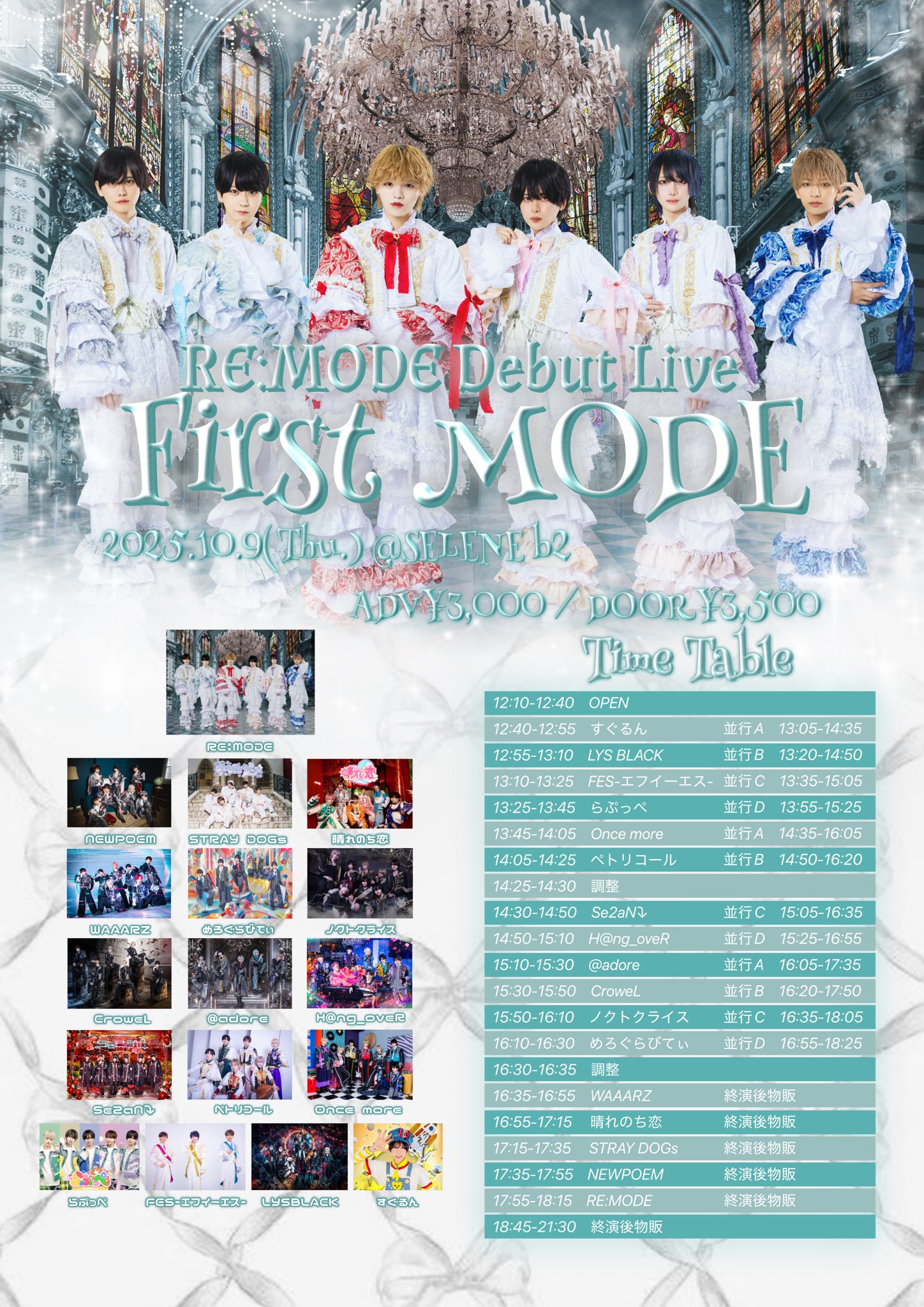 RE:MODE / NEWPOEM / STRAY DOGs / 晴れのち恋 / WAAARZ / めろぐらびてぃ / ノクトクライス / CroweL / @adore / H@ng_oveR / Se2aN⤵ / ペトリコール / Once more / らぷっぺ / FES-エフイーエス- / LYS BLACK / すぐるん