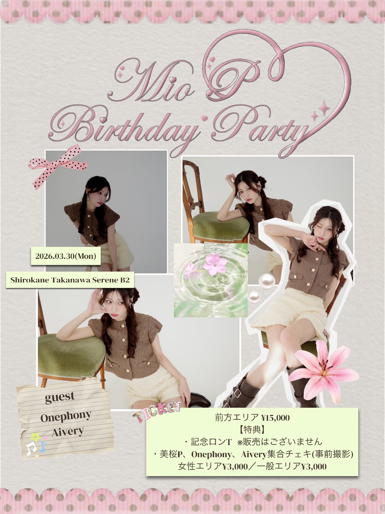 前方エリア : ¥15,000 女性エリア : ¥3,000 / 一般 : ¥3,000 / +drink(700円)