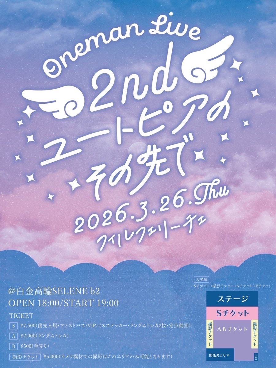 前方Sチケット : ¥7,500 / 一般Aチケット : ¥2,000
