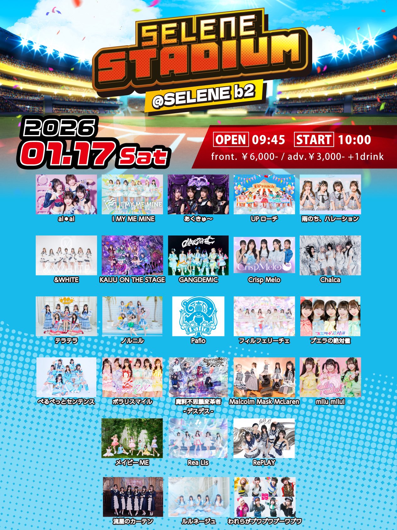 べるべっとセンテンス / われらがプワプワプーワプワ / ai*ai / I MY ME MINE / あくきゅ〜 / UPローチ / 雨のち、ハレーション / &WHITE / KAIJU ON THE STAGE / GANGDEMIC / Crisp Melo / Chalca / テラテラ / ノルニル / Pafio / フィルフェリーチェ / プエラの絶対値 / ポラリスマイル / 魔訶不思議変革者-デスデス- / Malcolm Mask McLaren / milu milu / メイビーME / Rea Lis / RePLAY / 流星のカーテン / ルルネージュ