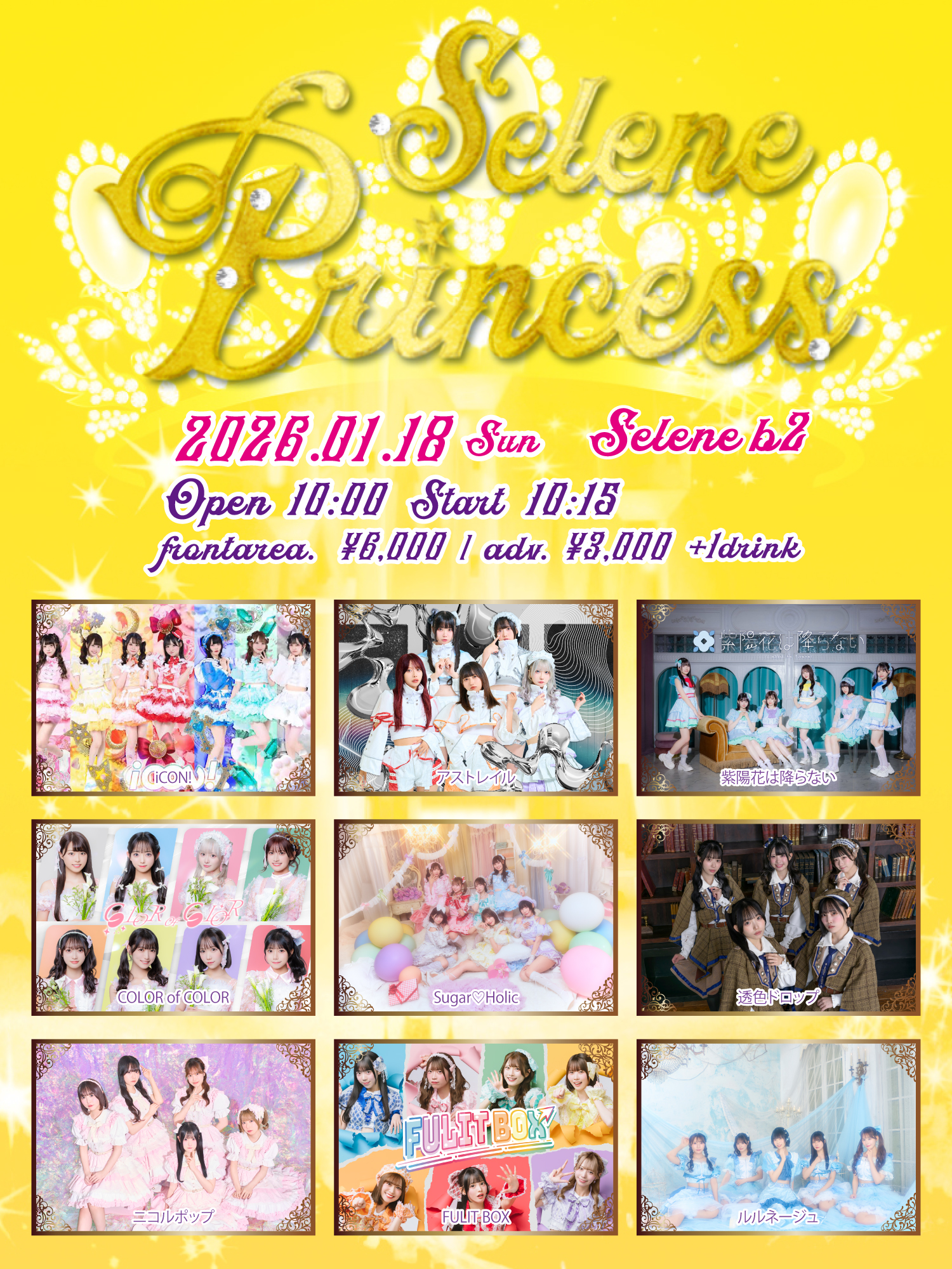 前方エリアチケット : ¥6,000 / 一般エリアチケット : ¥3,000 / +drink(¥700)