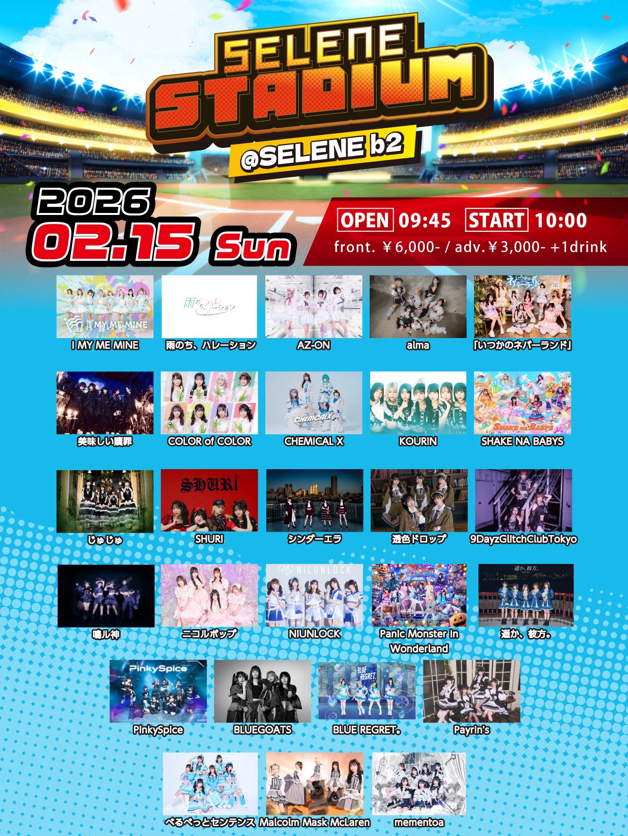 べるべっとセンテンス / I MY ME MINE / 雨のち、ハレーション / Malcolm Mask McLaren / AZ-ON / alma / 「いつかのネバーランド」 / 美味しい贖罪 / COLOR of COLOR / Question.VI / CHEMICAL X / KOURiN / SHAKE NA BABYS / じゅじゅ / SHURi / シンダーエラ / 透色ドロップ / 9DayzGlitchClubTokyo / 鳴ル神 / NiUNLOCK / Panic Monster !n Wonderland / 遥か、彼方。 / PinkySpice / BLUEGOATS / BLUE REGRET。 / Payrin's / mementoa