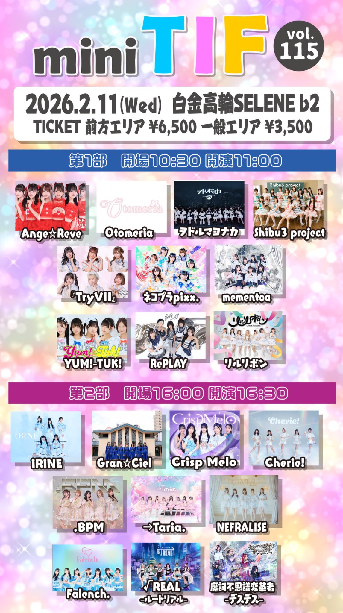 iRiNE / Gran☆Ciel / Crisp Melo / Cherie! / .BPM / →Taria. / NEFRALISE / Falench. / √REAL -ルートリアル- / 魔訶不思議変革者 -デスデス-
